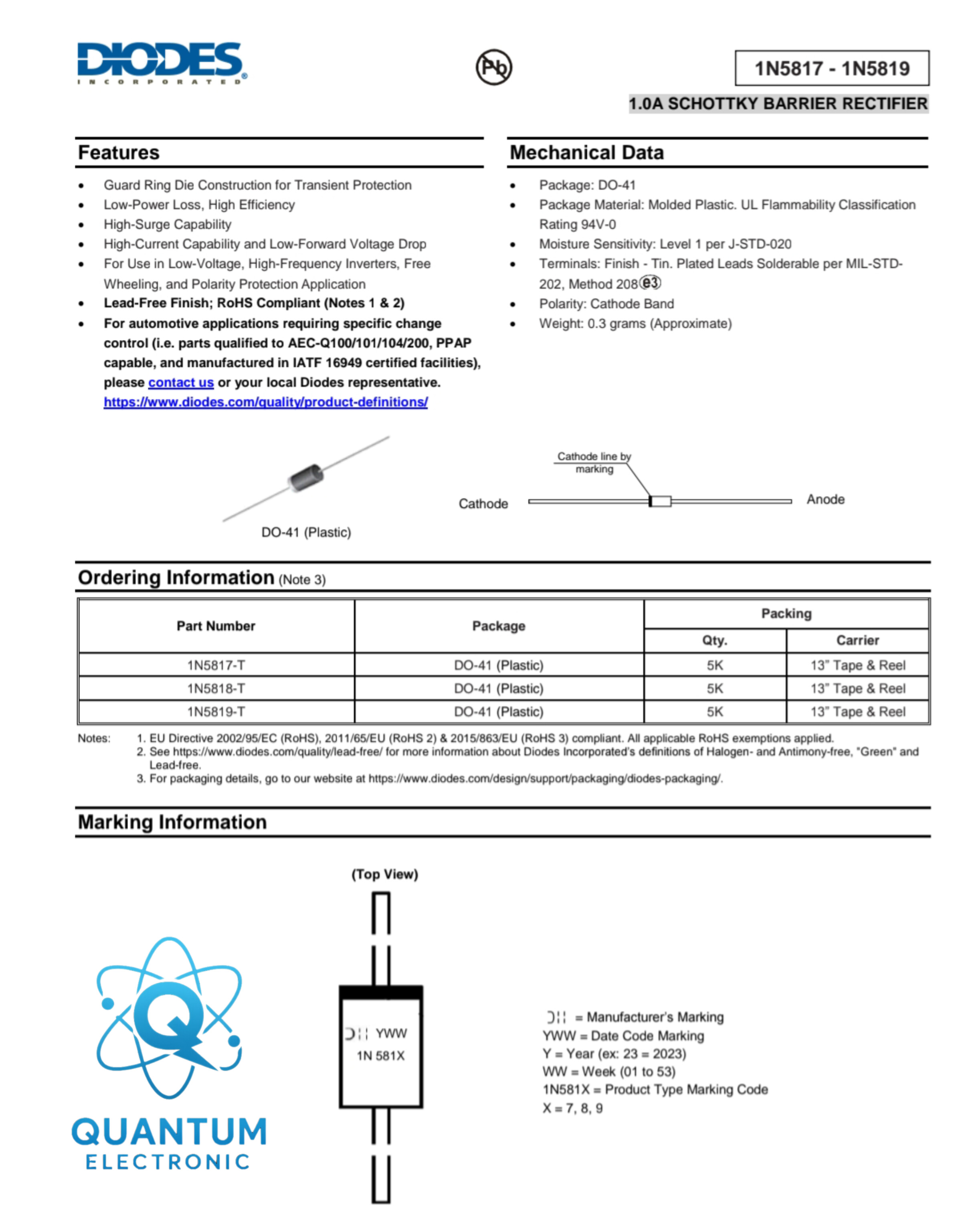 دیود شاتکی 1N5819 – سریع، کمافت، قابلاعتماد