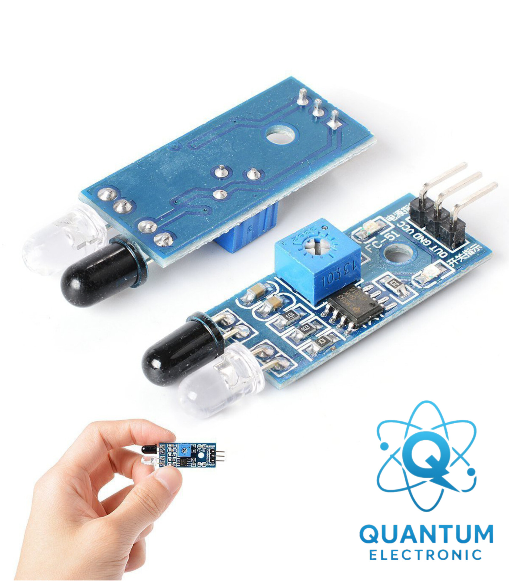 ماژول FC‑51 یک سنسور تشخیص مانع مادون قرمز است که برای اندازهگیری فاصله کوتاه طراحی شده و در رباتیک، خطوط تولید و پروژههای آموزشی کاربرد دارد. این ماژول دارای فرستنده و گیرنده IR و یک پتانسیومتر برای تنظیم حساسیت است.