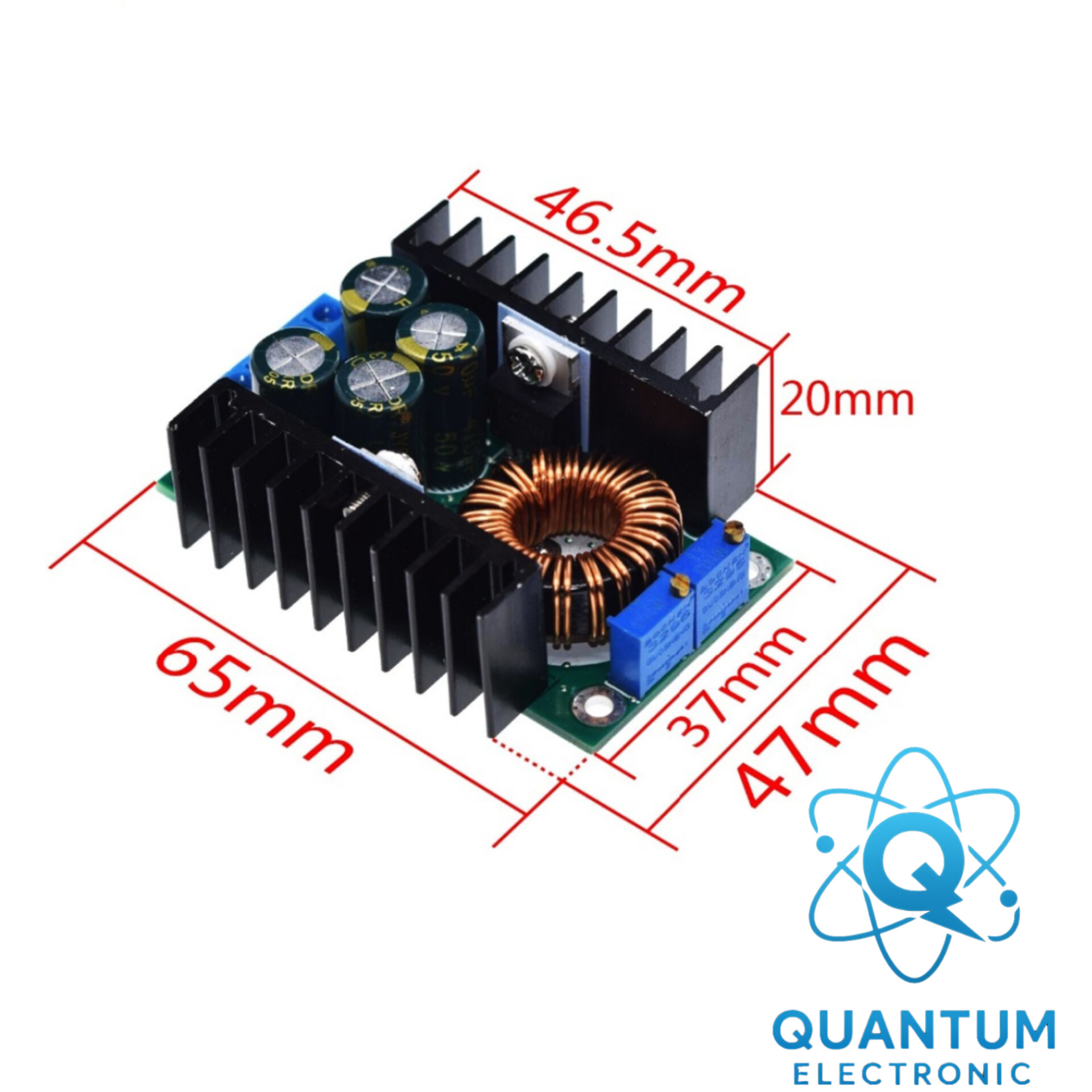 ماژول کاهنده XL4016 9 آمپر / 300 وات یک مبدل DC به DC کاهنده (Buck Converter) است که ولتاژ ورودی بالاتر را به ولتاژ پایینتر و پایدار تبدیل میکند و قادر است جریان خروجی تا ۹ آمپر را تأمین کند. این ماژول دارای قابلیت کنترل ولتاژ و جریان (CV/CC) است که با پتانسیومتر قابل تنظیم میباشد. ولتاژ ورودی آن معمولاً بین ۵ تا ۴۰ ولت و ولتاژ خروجی بین ۱.۲ تا ۳۵ ولت قابل تنظیم است. دارای محافظ اتصال کوتاه و توان خروجی ماژول تا حدود ۳۰۰ وات میرسد، با راندمان بالا (حدود ۹۴٪) و مناسب برای تغذیه LED پرتوان، باتری، پروژههای رباتیک و منابع تغذیه آزمایشگاهی میباشد. هنگام کار با جریان بالا، به خنککاری مناسب نیاز دارد تا از افزایش دما و آسیب به ماژول جلوگیری شود.