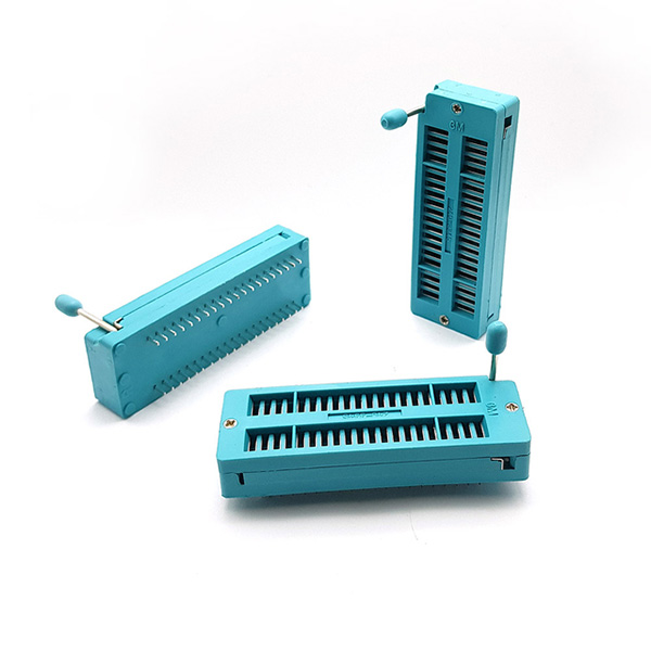 زیف سوکت 40 پین (ZIF Socket 40 Pin) یک کانکتور مخصوص برای قرار دادن و خارج کردن آیسیها و میکروکنترلرهای DIP بدون نیاز به فشار یا آسیب رساندن به پایههاست. واژه ZIF مخفف Zero Insertion Force به معنی "بدون نیروی فشاری" است؛ یعنی با بالا بردن یا پایین آوردن اهرم روی سوکت، پایههای آیسی بهراحتی در جای خود قفل یا آزاد میشوند. این نوع سوکت معمولاً در پروگرامرهای آیسی، بردهای تست و تجهیزات آموزشی استفاده میشود و به دلیل داشتن 40 پایه، برای آیسیهای DIP با عرض استاندارد و طول زیاد (مثل میکروکنترلرهای خانواده 8051 یا برخی حافظهها) مناسب است. مزیت اصلی آن، جلوگیری از خم شدن یا شکستن پایهها و امکان استفاده مکرر از آیسیها در آزمایشها و برنامهریزی است.